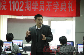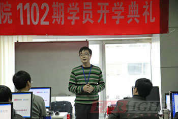 在王老師的講話結束后,由華清遠見教育科技集團院長季老師為開學典禮致辭,季老師對華清遠見教育科技集團的文化、發展歷程及授權合作單位進行了簡短的介紹,并對當前普遍關注的熱點“物聯網”、“云計算”、“電子書”、“移動通訊設備”等進行了逐一的分析,讓大家能夠充分感受到嵌入式行業的優勢和迅猛發展的現狀。同時季老師也鼓勵1102期的學員要努力學習,充分調動起自己的興趣和學習積極性,在華清遠見各位老師的幫助下,真正達到學有所成,終成為一名合格的嵌入式工程師。后季老師也給每位同學提出了幾點希望,希望同學們能夠迅速找到適合自己的學習方法,真正做到有質有量的學習。