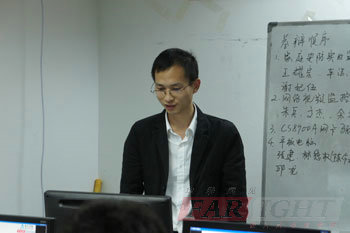 開始之前,曹老師先簡單的介紹了到會的各位老師,然后向學員們說明了答辯的流程和要求,并公布了學員答辯的順序。之后,由第一個項目組《家庭安防實時監控系統》的組長王耀宗拉開了答辯的序幕。