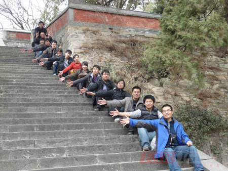 休息片刻,同學(xué)們開始向第二個(gè)目標(biāo)的沖刺——香爐峰。懷著激動(dòng)的心情一路上我們說說笑笑,我們迎著青松的呼喚,置身于群山樹木的懷抱中。我們一路前行,笑料百出。不知是哪位同學(xué),哼出一段西游記小曲,讓我們狂笑不止。甚至有的學(xué)員大叫到:你的腰牌在哪?一唱一和中,疲勞離我們遠(yuǎn)去,快樂在我們的身旁。年輕真好!班主任老師,由于體力不支,同學(xué)們幫忙找到一根“登山杖”做為王老師的第三只腿。雖然山路陡峭,也看到知難而退的路人們,我們猶豫過,退縮過,但后在同學(xué)之間的相互鼓勵(lì),我們問鼎高峰。放眼四望,北京盡在眼底,北京盡在腳下。