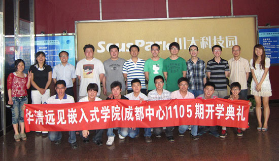 經過近十天的C基礎補習,2011年5月23日迎來了華清遠見成都中心1105期LINUX就業班正式開班的日子。開班當天在成都中心嵌入式實驗室一為這批新生學員隆重舉行了開學典禮。上午9點,開班典禮在大家熱烈的撐聲中正式開始了。出席本次開學典禮的有成都中心負責人陶老師;授課老師:王老師,潘老師等,以及中心咨訓,市場,就業,教務各部門的諸位老師。本次開學典禮由1105期班主任周老師主持。