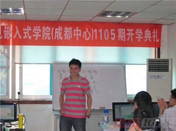 其次是成都中心受歡迎的授課老師王老師,上臺跟大家進行了學習方法的分享交流。撐握正確有效的學習方法,是學習知識的一大法寶,同樣的刻苦但若沒有有效的方法,還是會出現迥然不同的學習效果。因此,針對如何在四個月的時間內撐握更好更多的技術,如何更科學合理進學習,王老師在開學典禮上就此與大家主要分享了三點:第一,作好筆記,好記性不如亂筆頭,基礎學習中主要圍繞when to do?How to do?整理和學習;第二,堅持每天做好總結復習,且用自己的話形成總結文檔,隨時進行查詢、回顧;第三,學會預習,堅持預習,帶著問題聽課,提高學習效率;后,王老師表示在后期授課過程中,通過我們互相熟悉和了解后,再根據在同學們的實際情況作進行進一步的交流和調整。
