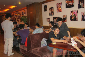 隨后我們在兩張大桌前坐下,開始邊吃邊聊等待著放映時間。有的學(xué)員還帶了撲克以做消遣。玩的鬧的吃的逛的,很是熱鬧。一掃四個月的學(xué)習(xí)壓力,看著他們玩的愜意,我深深的笑了。