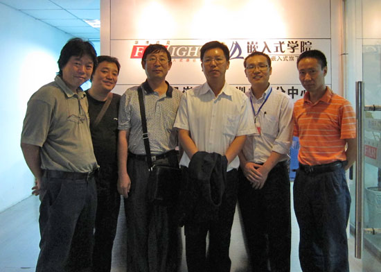 5位通過實地參觀和考察,對華清遠見實訓基地和嵌入式人才培養的理念和為華清遠見8年來在嵌入式行業中作出的貢獻給予了充分的肯定;同時,對華清遠見嵌入式教學自主研發的嵌入式實訓平臺、公開出版的50多套嵌入式專業書籍、和在業界積累有非常豐富的嵌入式就業合作企業資源給予了高度的評價。參觀后雙方在嵌入式、3G Android專業老師的培養和技術交流,學生的嵌入式生產實習、就業培養和校企共建等項目合作方面作了深入的交流和溝通, 并達成了初步的合作意向!