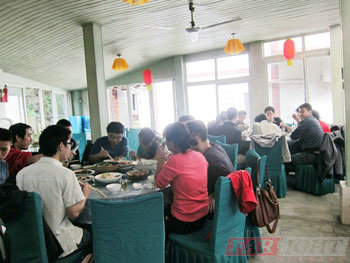 2011年10月16日是一個(gè)艷陽(yáng)天。“各路人馬”分別齊聚約定地點(diǎn)。清點(diǎn)完人數(shù)后我們出發(fā)了。不到30分鐘就到了幸福梅林站。知道我們到站的消息,水云間的農(nóng)家樂(lè)拿了一個(gè)大大的牌子過(guò)來(lái)迎接,讓我們感覺(jué)小小風(fēng)光,大家邁開(kāi)大步來(lái)到水云間。由于先前就發(fā)過(guò)照片到群里,大家都感覺(jué)像走在圖畫(huà)里,如夢(mèng)如幻般。然后我們就開(kāi)始了各種娛樂(lè)活動(dòng)。右邊羽毛球雙打激烈,左邊四川麻將血戰(zhàn)到底打的悠閑自得,中間下象棋的同學(xué)腦力運(yùn)動(dòng)拼殺中。打羽毛球的人員打著打著開(kāi)始嫌棄場(chǎng)地沒(méi)有辦法把他們的功力發(fā)揮的淋漓盡致,于是決定換場(chǎng)地到不遠(yuǎn)處的幸福梅林游客中心去施展功夫。當(dāng)通知他們回來(lái)聚餐時(shí)都還意猶未盡。