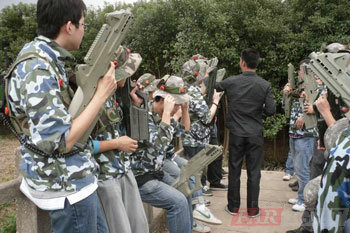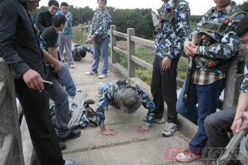 2011年10月20日上午華清遠(yuǎn)見教育科技集團(tuán)上海中心1109期全體學(xué)員在班主任胡老師的帶領(lǐng)下來(lái)到上海青浦區(qū)感受了一下真人CS軍事野戰(zhàn)體驗(yàn)。