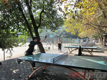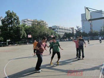 在挨著的三個球場上不時地可以看到:從羽毛球場跑到乒乓球臺進行切磋的,從乒乓球臺,碾轉到籃球場搶籃板的,籃球到乒乓球,乒乓球到籃球,乒乓球到羽毛球,整個球場竄動著我們的人馬,呵呵其實,在跑動中還有一項運動:短跑,也在悄然進行。盡管有短跑,但其實,整個過程大家運動的節奏更像心情一樣,舒緩地在進行。拍照、擺pose、觀戰、調侃、參戰、跑場,東拉西扯、左顧右盼、評頭論足盡情玩笑,是一場好友的聚會,輕松隨意,充滿歡樂。一個上午的時間,大家互相切磋球技的同時,更在一種不同平日的輕松環境中進行交流,感覺更親近了不少。