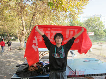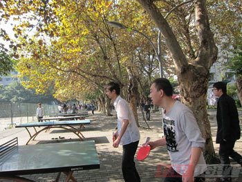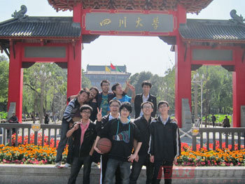 下午快到1點時,大部分球員衣服汗濕了,球打盡興了,肚子也已經跳空了,于是我們一起沖向了我們的午餐——自助冷鍋魚。 我們一行近二十個人收拾好器材,浩浩蕩蕩地走進了川大人群中。路上,有湛藍色的天空,路道兩旁黃色的梧桐葉、抑或郁郁蔥蔥的綠葉,再有燦爛的陽光……我們邊走邊在這個園林式的大學里拍照留念,為美境,更為此刻的心情。