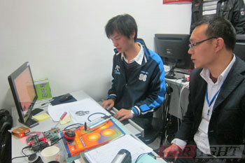 圖一、成都中心負責人陶校長親自分別檢測大家的項目成果 |
