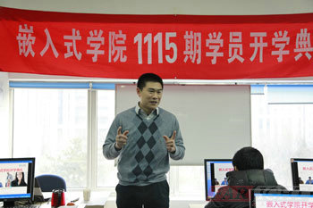 在班主任老師做了簡短的自我介紹后, 首先大家以熱烈的掌聲歡迎華清遠見教育科技集團院長季老師為開學典禮致辭,季老師對華清遠見教育科技集團的文化、發展歷程及授權合作單位進行了簡短的介紹,并對當前普遍關注的熱點“物聯網”、“云計算”、“電子書”、“移動通訊設備”等進行了逐一的分析,并舉例對“智能房屋”、“智能交通”等讓大家能夠充分感受到嵌入式行業的優勢和迅猛發展的現狀。同時季老師也鼓勵1115期的學員要努力學習,充分調動起自己的興趣和學習積極性,在華清遠見各位老師的幫助下,真正達到學有所成,終成為一名合格的嵌入式工程師。后季老師也給每位同學提出了幾點希望,希望同學們能夠迅速找到適合自己的學習方法,真正做到有質有量的學習。