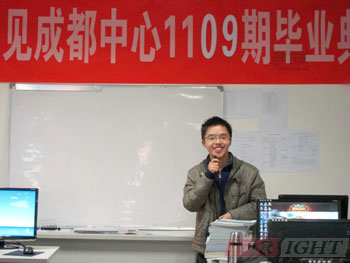 接下來進行了隆重的畢業典禮。首先請到中心負責人陶老師為本次典禮致辭。陶老師首先關切的問大家,這四個月的時間辛苦嗎?大家都異口同聲的回答:“辛苦”。從大家回答的力度上看的出來,這辛苦中的沉淀和收獲是不言而喻的。陶老師非常欣慰的表示,看見大家從剛剛來的青澀小苗子,到現在長成一顆顆可以迎接風吹雨打的樹,希望以后成為一顆顆可以在這個行業里有一番不錯成績的參天大樹。而在大家這個從樹到參天大樹的過程中,我們將是大家堅實的后盾。
