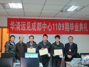 在這玉兔辭舊,金龍迎新之際,華清遠見成都中心又有一批莘莘學子全面完成了任務,準備要魚躍龍門。為此,2012年1月19日早上9點,在嵌入式實驗室二為我們1109期進行了項目答辯并舉行了隆重的畢業典禮。參加本次項目答辯和畢業典禮的老師有:成都中心負責人陶老師,教學部潘老師、王老師,就業部周老師以及咨詢部等各部門各位老師。本次項目答辯和畢業典禮由1109期班主任李老師主持。