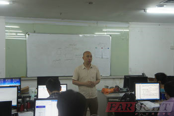 答辯依然在緊張地進行當中,各位答辯學員依次上臺演示自己四個月以來的學習成果,通過精心準備的PPT,流暢的表達,清晰的思路,與各位老師、同學一起分享自己的畢業成果與快樂。老師在臺下認真地傾聽學員們的展示,有針對性的、技術性的、專業性的提出有關的問題,并做出相關的建議與學員們交流。在解答一些學員問題時,答辯老師還親自上臺畫圖講解,讓學員們聽的頻頻點頭。畫圖講解更使原理形象化,可見老師與學員們注重的是動手能力與操作能力。答辯過程中,學員們表現得都非常精彩,思維敏捷,回答條理。