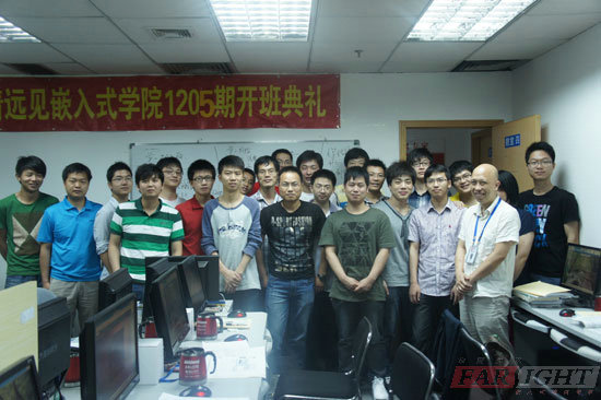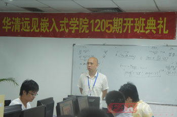 2012年05月02日,深圳華清遠見教育科技集團1205期在教室四隆重舉行開班典禮。參加開班典禮的有深圳分中心校長梁老師、教學總監易老師、就業老師郭老師以及班主任曹老師等。