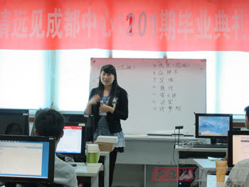 在陶老師的講話結(jié)束后,由教學(xué)部潘老師對四個(gè)月的學(xué)習(xí)做總結(jié)。潘老師回顧了四個(gè)月的學(xué)習(xí)過程中大家取得的進(jìn)步和收獲,同時(shí)也指出了大家存在的缺點(diǎn)和不足。潘老師希望大家早日找到滿意的工作,并在今后的工作中能揚(yáng)長避短,爭取更好的成績。