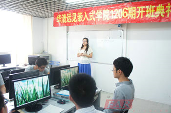 本次開班典禮由曹老師主持,并在上午9點準時舉行。首先熱烈歡迎中心校長梁老師為典禮致辭。梁老師首先從宏觀上為學員分析了嵌入式行業的發展前景,然后從相關政策對物聯網大力推行的良好發展形勢來分析目前在全國正是嵌入式行業發展的佳時機。接著介紹了我們華清遠見教育科技集團成立的背景以及華清遠見教育科技集團的優勢,強大的師資團隊、實用的課程體系、權威的認證體系、支持高校嵌入式學科建設、構建企業人才培養標準和全國范圍的就業服務體系后給學員們在培訓期間提了幾點建議,希望學員們充分利用培訓時間,掌握所學的相關知識,朝著嵌入式行業的發展速度進軍。