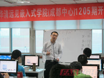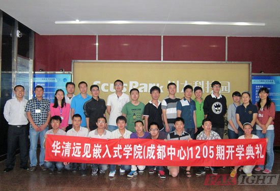 2012年6月18日,天氣涼爽而舒適,華清遠(yuǎn)見成都中心的嵌入式實(shí)驗(yàn)室里迎來了我們1205期的新生學(xué)員,并隆重舉辦了開學(xué)典禮。當(dāng)天參加開學(xué)典禮的有成都中心校長(zhǎng)陶老師,教學(xué)部的潘老師、王老師,品質(zhì)保障部的周老師、黃老師,行政部的嚴(yán)老師等。
