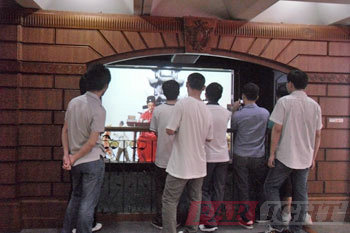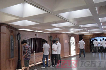 走上三樓你便會(huì)看到圓圓的放映室,人們站在中間,四周的墻壁上是360度的放映熒屏。“上海神奇之旅”虛擬影片將帶您360度環(huán)游上海,全新感受。