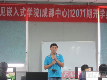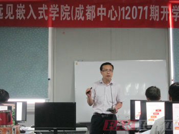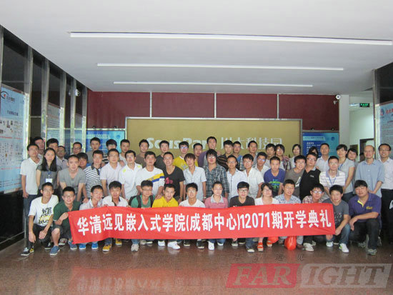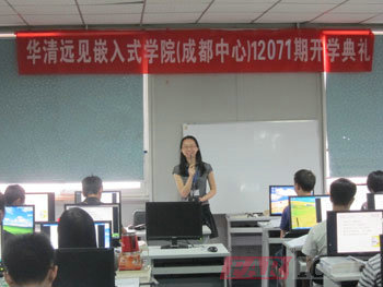 2012年7月23日,伴著天空蒙蒙細雨,炎炎的夏日也添了一絲清涼,當天在華清遠見成都中心的嵌入式實驗室805隆重舉辦了12071期開學典禮。參加本次開學典禮的老師有成都中心校長陶老師,教學部的潘老師、王老師、姜老師,品質保障部的周老師、黃老師等。開學典禮由班主任張老師主持。