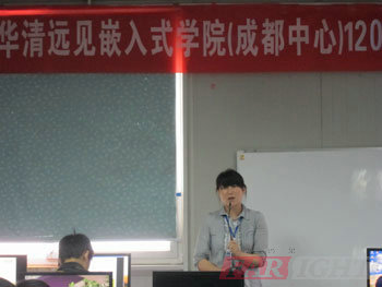 上午9::00開學典禮正式開始。首先,由張老師隆重的介紹了參加開學典禮的各位老師。接著,大家以熱烈的掌聲歡迎成都中心校長陶老師為開學典禮致辭。陶老師首先對大家來華清遠見成都中心學習表示歡迎,作為嵌入式行業資深的職業規劃師,他還介紹了嵌入式的發展現狀、前景和成都中心的相關情況,后,陶老師結合自己多年的教育經驗,就學習方法跟大家作分享,同時,陶老師鼓勵全體學員充分利用在華清遠見學習的時間,在華清遠見各位老師的幫助下,真正學有所成,終成為一名合格的嵌入式工程師。