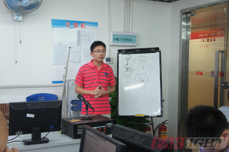 答辯依然在緊張地進行當中,各位答辯學員依次上臺演示自己四個月以來的學習成果,通過精心準備的PPT,流暢的表達,清晰的思路,與各位老師、同學一起分享自己的畢業成果與快樂。老師在臺下認真地傾聽學員們的展示,有針對性的、技術性的、專業性的提出有關的問題,并做出相關的建議與學員們交流。在解答一些學員問題時,答辯老師還親自上臺畫圖講解,讓學員們聽的頻頻點頭。畫圖講解更使原理形象化,可見老師與學員們注重的是動手能力與操作能力。答辯過程中,學員們表現得都非常精彩,思維敏捷,回答條理。