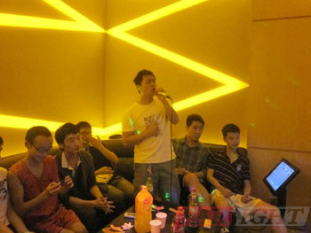 全體師生一起清理好球場后,來到高升橋附近的冷鍋魚店聚餐,之后前往星光燦爛KTV唱歌。一進KTV包廂,學員們都爭先到點歌臺點歌,我們的帶隊老師則忙著查看話筒,小吃,飲料等各項設施,組織安排學員們。不一會兒,各個包廂里就響起了學員們優美動聽的歌聲。譚停更是以一曲楊坤的《無所謂》震驚全場,大家都懷疑是原唱。就這樣大家你一首我一曲,有獨唱的,有對唱的,有合唱的,尤其一首《怒放的生命》把氣氛推向了高潮,大家將這段一起學習拼搏的日子,將這愉快而興奮的一天留在了我們的歌聲里,深深印入了腦海中……