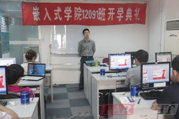 本次開學典禮由班主任胡老師主持。胡老師首先介紹了一下自己,接著介紹了一下今天參加開學典禮的幾位嘉賓。首先由上海中心負責人高老師為開學典禮致辭,高老師從宏觀上為學生分析了嵌入式行業的發展前景,然后從相關政策對物聯網大力推行的良好發展形勢來分析目前在全國正是嵌入式行業發展的佳時機。接著介紹了我們華清遠見教育科技集團的優勢,優秀的師資團隊、完善的課程體系、權威的認證體系、有自己研發的開發板以及相關教材、全國范圍的就業服務體系。后為學員們在學習過程中提了幾點建議和要求。希望學員們在接下來的學習過程中要勞逸結合、有目的、有計劃、有方向的學習,學習方法也要不斷的進行調整,希望學員們充分利用好這短暫而漫長的四個月的學習時間。真正成為嵌入式開發人才。