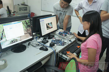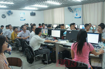 答辯依然在緊張地進行當中,各位答辯學員依次上臺演示自己四個月以來的學習成果,通過精心準備的PPT,流暢的表達,清晰的思路,與各位老師、同學一起分享自己的畢業成果與快樂。老師在臺下認真地傾聽學員們的展示,有針對性的、技術性的、專業性的提出有關的問題,并做出相關的建議與學員們交流。在解答一些學員問題時,答辯老師還親自上臺畫圖講解,讓學員們聽的頻頻點頭。畫圖講解更使原理形象化,可見老師與學員們注重的是動手能力與操作能力。答辯過程中,學員們表現得都非常精彩,思維敏捷,回答條理。