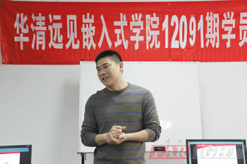 接著大家以熱烈的掌聲歡迎華清遠見教育科技集團院長季老師為開學典禮致辭,季老師對華清遠見教育科技集團的文化、發展歷程及授權合作單位進行了簡短的介紹,并對當前普遍關注的熱點“物聯網”、“云計算”、“電子書”、“移動通訊設備”等進行了逐一的分析,并舉例對“智能房屋”、“智能交通”等讓大家能夠充分感受到嵌入式行業的優勢和迅猛發展的現狀。同時季老師也鼓勵12021期的學員要努力學習,充分調動起自己的興趣和學習積極性,在華清遠見各位老師的幫助下,真正達到學有所成,終成為一名合格的嵌入式工程師。后季老師也給每位同學提出了幾點希望,希望同學們能夠迅速找到適合自己的學習方法,真正做到有質有量的學習。
