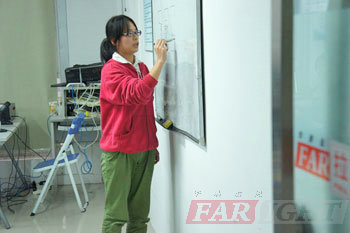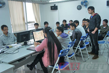 答辯依然在緊張地進行當中,各位答辯學員依次上臺演示自己四個月以來的學習成果,通過精心準備的PPT,流暢的表達,清晰的思路,與各位老師、同學一起分享自己的畢業成果與快樂。老師在臺下認真地傾聽學員們的展示,有針對性的、技術性的、專業性的提出有關的問題,并做出相關的建議與學員們交流。在解答一些學員問題時,答辯老師還親自上臺畫圖講解,讓學員們聽得頻頻點頭。畫圖講解更使原理形象化,可見老師與學員們注重的是動手能力與操作能力。答辯過程中,學員們表現得都非常精彩,思維敏捷,回答條理。