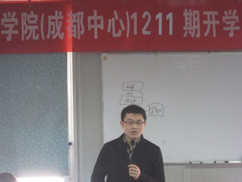 | 圖三、成都中心朱老師介紹學習方法 | 圖四、成都中黃老師講解就業相關事宜 |