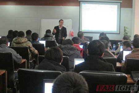 為提高金網(wǎng)通電子有限公司工程師的專業(yè)技能,華清遠(yuǎn)見(jiàn)成都中心的老師為本次內(nèi)訓(xùn)制訂了豐富的內(nèi)容,主要包括四大組件、高級(jí)UI、自定義組件、應(yīng)用程序設(shè)計(jì)、ListView及其優(yōu)化、Gallery與ImageSwitch、數(shù)據(jù)存儲(chǔ)、Intent及其與進(jìn)程間通信、界面更新、Louncher、Android多煤體開(kāi)發(fā)、圖形編程、Android網(wǎng)絡(luò)編程、Webkit及JS擴(kuò)展、NDK、游戲開(kāi)發(fā)等內(nèi)容,兩位老師深入淺出的授課風(fēng)格及專業(yè)的課程內(nèi)容講解,讓在場(chǎng)工程師受益匪淺,好評(píng)連連。