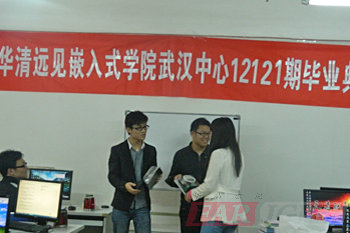 2013年4月19日華清遠見嵌入式武漢中心12101期畢業典禮在武漢工程大學科技孵化器大樓804-1舉行。參加本次畢業典禮的嘉賓有:項目指導老師莊老師、就業指導老師周老師、班主任王老師,彭老師等。