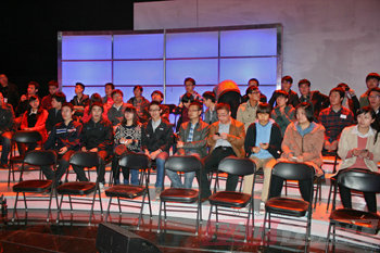 2013年4月21日,華清遠見教育科技集團13021期共40余名學員,應邀參加了中央電視臺《首席夜話》節目的現場錄制。活動當天,大家懷著無比激動的心情前去,希望能夠在緊張的學習之余好好放松一下心情同時可以近距離對話明星。按約定時間中午12點整,全體成員準時在中央電視臺北門前集合。經過工作人員的,同學們來到了央視2號演播廳《首席夜話》錄制節目現場。工作人員向大家說明了注意事項,以確保每位觀眾上鏡后的佳姿態。因為這一次樂嘉采訪的嘉賓是李亞鵬。