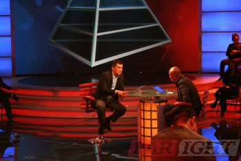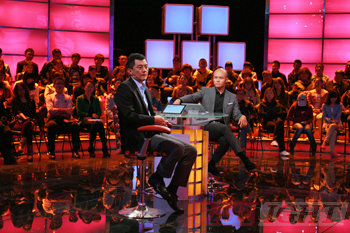 | 圖三、主持人樂嘉西裝上場 | 圖四、嘉賓李亞鵬上場 |