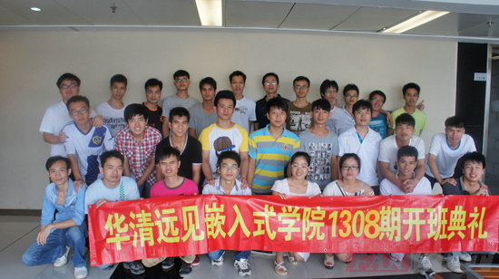 2013年6月28日,深圳華清遠見教育科技集團1308期在實訓(xùn)四隆重舉行開班典禮。參加開班典禮的嘉賓有深圳分中心學(xué)術(shù)總監(jiān)易老師、就業(yè)老師齊老師、技術(shù)督導(dǎo)關(guān)老師、講師徐沙老師、班主任唐老師等。