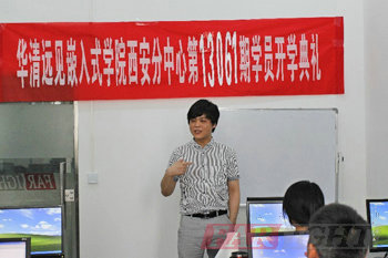 西安的盛夏,在連日的高溫下早早到來。高溫焦灼下,這個城市也漸漸開始狂躁。如一場及時雷陣雨,像隨風潛入夜一般的透意清涼,華清遠見西安中心13061班在七月一號開始了一階段的學習。自6月17號基礎補習以來,13061期的學員便開始了踏實的學習征程。在基礎補習之后,華清遠見西安分中心嵌入式Linux&Android就業班13061期學員在2013年7月1號迎來了他們的開學典禮。