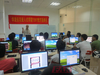 2013年7月22日,華清遠見廣州中心嵌入式Linux&Android就業班13071期的開學典禮在廣州大學城校區隆重舉行。出席本次開學典禮的有專程從北京趕來的華清遠見教育科技集團總裁、華清遠見教育科技集團院長季老師,華清遠見廣州分中心負責人古老師,華清遠見廣州分中心高級顧問梁老師,華清遠見教育科技集團講師牛老師、以及班主任李老師等。