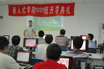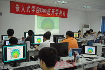 8月12日上午9:10在班主任廖老師的主持下開(kāi)學(xué)典禮正式開(kāi)始。首先廖老師做了簡(jiǎn)短的自我介紹并且代表華清遠(yuǎn)見(jiàn)全體師生對(duì)13071期學(xué)員的到來(lái)表示熱烈的歡迎。接著介紹了參加13071班開(kāi)學(xué)典禮的各位老師,接下來(lái)有上海中心行政老師講話(huà),然后大家以熱烈的掌聲歡迎上海中心負(fù)責(zé)人王老師為典禮致辭,介紹了我們的師資力量和我們的就業(yè)情況,并且跟各位同學(xué)分享了相關(guān)嵌入式的專(zhuān)業(yè)性的技術(shù)交流,后來(lái)播放了一段很有代表性的視頻,王老師首先從宏觀上為學(xué)員分析了嵌入式行業(yè)的發(fā)展前景,然后從相關(guān)政策對(duì)物聯(lián)網(wǎng)大力推行的良好發(fā)展形勢(shì)來(lái)分析目前在全國(guó)正是嵌入式行業(yè)發(fā)展的佳時(shí)機(jī),對(duì)在座各位13071期學(xué)員今天選擇嵌入式這個(gè)行業(yè)表示了肯定。接著對(duì)華清遠(yuǎn)見(jiàn)的發(fā)展史做了詳細(xì)的介紹,并對(duì)嵌入式行業(yè)的前景、與學(xué)院合作的單位、上海中心前幾期學(xué)員學(xué)習(xí)情況和就業(yè)情況等做了簡(jiǎn)單的介紹。同時(shí)王老師也鼓勵(lì)13071期學(xué)員們努力學(xué)習(xí),充分調(diào)動(dòng)起自己的興趣和學(xué)習(xí)積極性,在華清遠(yuǎn)見(jiàn)各位老師的幫助下,真正成為學(xué)有所成的合格嵌入式工程師。然后王老師也給同學(xué)們錢(qián)強(qiáng)調(diào)了學(xué)習(xí)管理制度,也給每位同學(xué)提出了幾點(diǎn)要求,希望同學(xué)們能夠迅速找到適合自己的學(xué)習(xí)方法, 做到盡心盡力,學(xué)有所成。