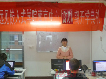 下午2點在班主任冀老師的主持下開學典禮準時進行。首先熱烈歡迎中心校長劉老師為典禮致辭。劉老師首先為大家介紹為什么學習嵌入式,嵌入式技術是未來十年信息產(chǎn)業(yè)的基礎!“后嵌入式”時代已來臨,“未來技術”離不開嵌入式,學員對嵌入式行業(yè)充滿了信心。其次介紹華清遠見具有早、專注、系統(tǒng)與權威的優(yōu)勢,就因為這些優(yōu)勢,學員選擇到華清遠見來上課,這說明我們?nèi)A清遠見是值得信賴的。然后介紹了我們?nèi)A清遠見教育科技集團成立的背景以及華清遠見教育科技集團的優(yōu)勢,強大的師資團隊、實用的課程體系、權威的認證體系、支持高校嵌入式學科建設、構建企業(yè)人才培養(yǎng)標準和全國范圍的就業(yè)服務體系。后劉校長又給學員們在培訓期間提了幾點學習建議,希望學員們培訓期間刻苦學習,講究學習方法,也要注意心態(tài)平和,勞逸結合,為自己而學。