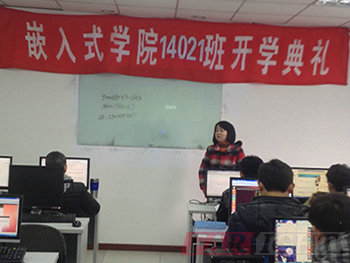 接著是上海中心校長王老師為典禮致辭。王老師首先為大家介紹為什么學習嵌入式,嵌入式技術是未來十年信息產業的基礎!“后嵌入式”時代已來臨,“未來技術”離不開嵌入式,學員對嵌入式行業充滿了信心。王老師對華清遠見教育科技集團的文化、發展歷程及授權合作單位進行了簡短的介紹,華清遠見具有早、專注、系統與權威的優勢,就因為這些優勢,學員選擇到華清遠見來上課,這說明我們華清遠見是值得信賴的。然后介紹了我們華清遠見教育科技集團成立的背景以及華清遠見教育科技集團的優勢,強大的師資團隊、實用的課程體系、權威的認證體系、支持高校嵌入式學科建設、構建企業人才培養標準和全國范圍的就業服務體系,并對當前普遍關注的熱點“物聯網”、“云計算””等進行了逐一的分析,并舉例我們華清遠見對一些傳統企業進行內訓的技術點等讓大家能夠充分感受到嵌入式行業的優勢和迅猛發展的現狀。同時王老師鼓勵14021期的學員要努力學習,充分調動起自己的興趣和學習積極性,在華清遠見各位老師的幫助下,真正達到學有所成,終成為一名合格的嵌入式工程師。后王老師也給每位同學提出了幾點希望,希望同學們能夠迅速找到適合自己的學習方法,真正做到有質有量的學習。