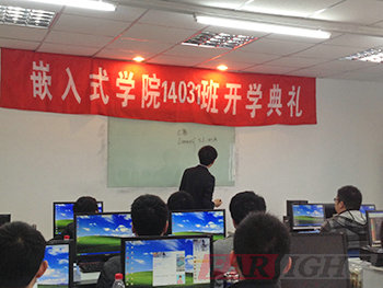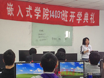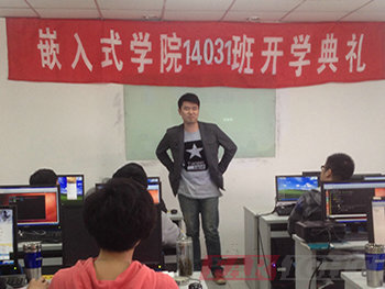 風趣幽默的自我介紹后由上海中心校長王老師為典禮講話。王老師首先為大家介紹為什么學習嵌入式,嵌入式技術是未來十年信息產業的基礎!“后嵌入式”時代已來臨,“未來技術”離不開嵌入式,學員對嵌入式行業充滿了信心。 王老師對華清遠見教育科技集團的文化、發展歷程及授權合作單位進行了簡短的介紹,華清遠見具有早、專注、系統與權威的優勢,就因為這些優勢,學員選 擇到華清遠見來上課,這說明我們華清遠見是值得信賴的。然后介紹了我們華清遠見教育科技集團成立的背景以及華清遠見教育科技集團的優勢,強大的師資團隊、實用的課程體系、權威 的認證體系、支持高校嵌入式學科建設、構建企業人才培養標準和全國范圍的就業服務體系,并對當前普遍關注的熱點“物聯網”、“云計算””等進行了逐一的分析,并舉例我們華清遠見對一些傳統企業進行內訓的技術點等讓大家能夠充分感受到嵌入式行業的優勢和迅猛發展的現狀。同時王老師鼓勵14031期的學員要努力學習,充分調動起自己的興趣和學習積極性,在華清遠見各位老師的幫助下,真正達到學有所成,終成為一名合格的嵌入式工程師。后王老師也給每位同學提出了幾點希望,希望同學們能夠迅速找到適合自己的學習方法,真正做到有質有量的學習。