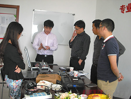 隨后王老師在會議室給學院做了一場匯報,匯報包含華清遠見集團的介紹及獲得的榮譽,嵌入式技術的教學體系,學員在華清遠見的學習生活情況。負責就業的付老師介紹了華清遠見在嵌入式技術領域的合作企業,畢業學員的就業情況,還和顏老師一同討論了針對90后的學生特點,采取哪些方法能夠更好提高畢業生的就業率與就業質量。匯報之后,梁書記、潘院長、顏老師一行人還欣賞了華清遠見出版的嵌入式專業書籍,體驗了華清遠見自主研發的實驗平臺及項目演示。通過實地參觀、考察、調研,梁書記、潘院長、顏老師對上海中心實訓基地和嵌入式人才培養的理念給予了充分的肯定;同時,對上海中心嵌入式教學自主研發的嵌入式實訓平臺、公開出版的多套嵌入式專業書籍、和在業界積累有非常豐富的嵌入式就業合作企業資源給予了高度的評價。后雙方在校企合作方面作了深入的交流和溝通。
