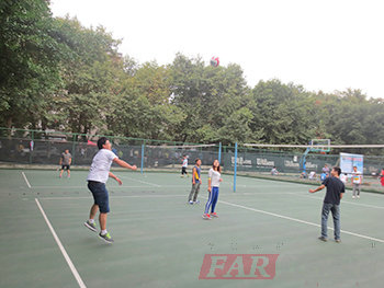 羽毛球比賽和乒乓球球比賽激烈地進行著,我們的“特邀”裁判們認真地行使著自己的權利,除了計分,還有安排隊員比賽的任務。乒乓球賽異常激烈地進行著,學員當中還隱藏著高手,弧圈、上旋、下旋和削球技術運用自如使高手之間的較量也更加精彩,只聽見啦啦隊響起陣陣地喝彩聲。經過激烈的“廝殺”,羽毛球比賽和乒乓球比賽的前三名脫穎而出,裁判和他們都得到了成都中心準備的小禮品。而兩支“超業余”的排球隊也打得甚歡,雖未進行比賽,但僅僅是友誼賽大家都如此投入,可見大家都有著運動員的精神。