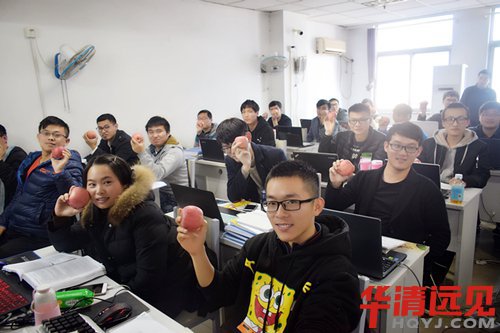 一人一顆大紅蘋果發完后,校長劉老師對17111期學員表達了節日祝福,并且表揚了在座的每位學員不畏嚴寒,刻苦學習的良好品質。雖然只是一顆蘋果,但是它代表了華清對每位學員的一份心意。希望四個月后,從華清走出去的學員們都能像今天這顆蘋果一樣紅紅火火!