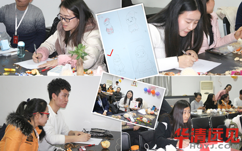 接下來就來到了畫畫環(huán)節(jié)。看著大屏幕投影的原畫,4名參賽選手也聚精會神的開始作畫了。本環(huán)節(jié)的優(yōu)勝獎會花落誰家呢?讓我們拭目以待! 終,來自3組的劉小麗老師用她的作品征服了在場所有的評委,不愧是靈魂畫手啊,我大華清真的是藏龍臥虎!