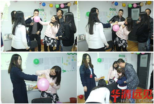 后一個游戲考驗的是團隊協(xié)作,簡單來說就是每人只能利用自己身體的一部分通過相互配合來壓爆氣球,用時短方可獲得勝利。