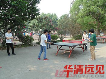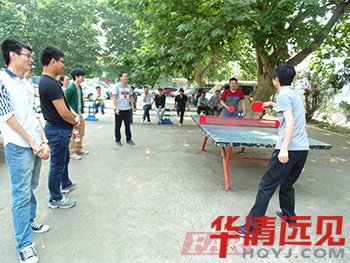 比賽在緊張激烈的進行,而等待上場的隊員們也沒 閑著,在比賽場旁邊的空地,有的打羽毛球,有的打籃球,更多的是給場上的隊員加油助威!由于之前兩位隊員都進行了激烈的比賽,所以在乒乓球決賽正式開始 前,兩位隊員都申請休息。稍作休息之后,乒乓球決賽正式開始。所謂高手過招,分毫必爭,你一個旋風球,我一個掉高球,左攻右守,各不相讓。考的是技術,比 的是心態。終鄧同學獲勝。