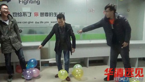 團(tuán)團(tuán)圓圓:6個(gè)人分為2隊(duì)都在左腳踝上綁著氣球,大家踩破對(duì)方的氣球,保護(hù)好自己的氣球,游戲開始,競(jìng)爭(zhēng)還是很激烈的,大家都互踩起來(lái)了。
