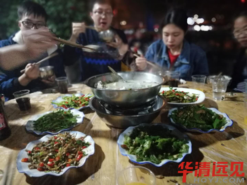 雖然條件是簡陋點,勝在飯菜很合口味,每個人都有找到自己最愛吃的菜,并且覺得其它的菜也很好吃。大家吃的都很歡暢,吃飯要的不就是這效果。