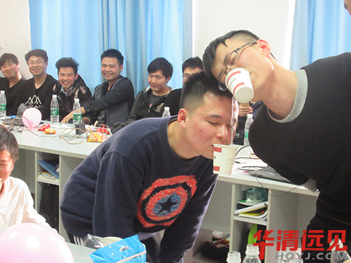 游戲結束之后,“齊心協力隊”獲得了冠軍,每人得到了一個小禮物,最后一名是“曉隊”,果然沒有白起這個特別的名字。曉隊的懲罰也是比較狠的,有頂書走貓步的,有對著窗外大喊“放我出去,我好寂寞”,還有深情告白……